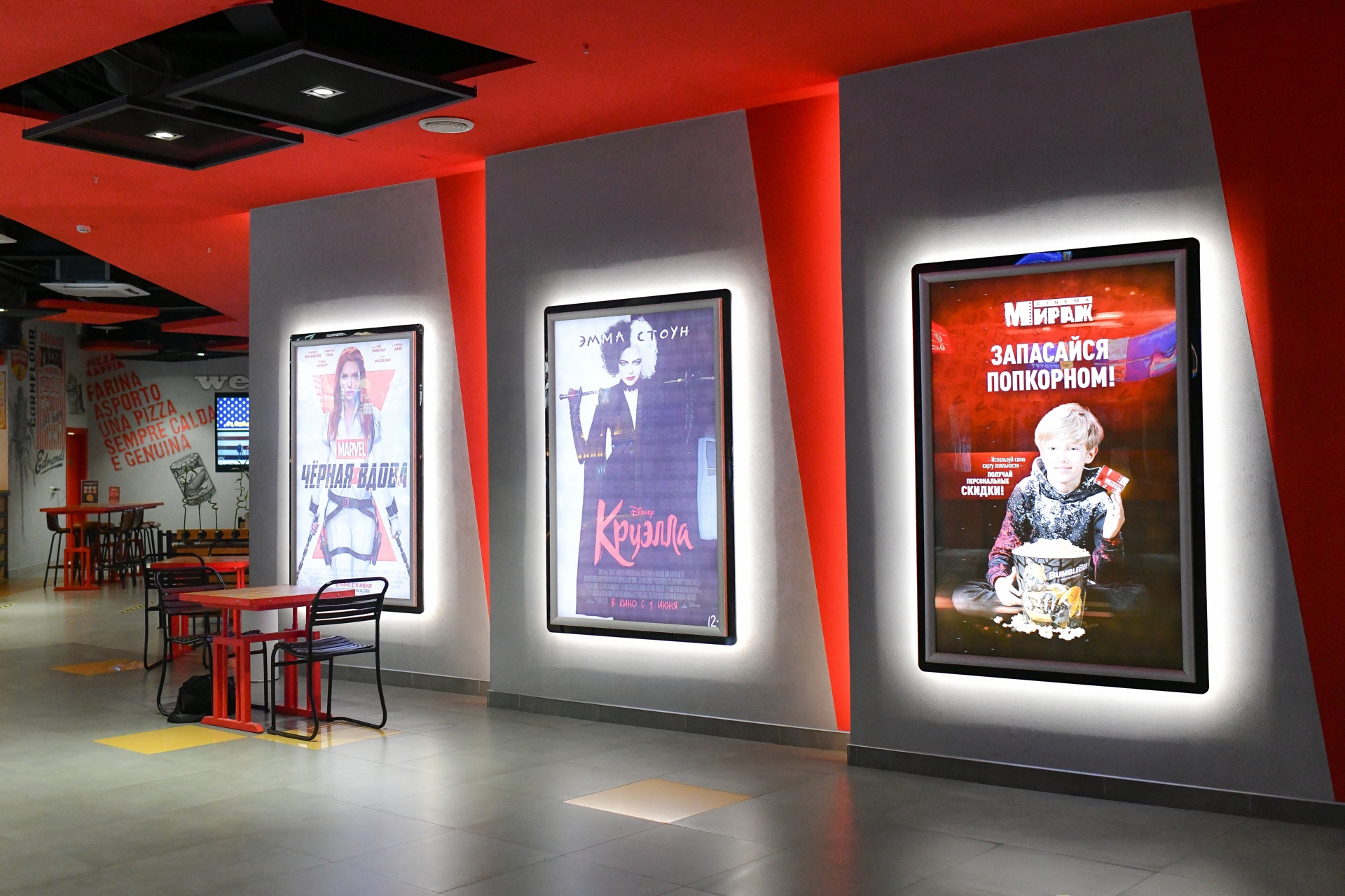 Для вашего удобства в трёх залах ожидания кинотеатра расположены диваны и столики. Плазменные экраны транслируют актуальную информацию, а бесплатный WI-FI позволяет быстро связаться с близкими, чтобы пригласить их в кино или на кофе. Также обращаем внимание, что у VIP залов имеется отдельная зона ожидания.